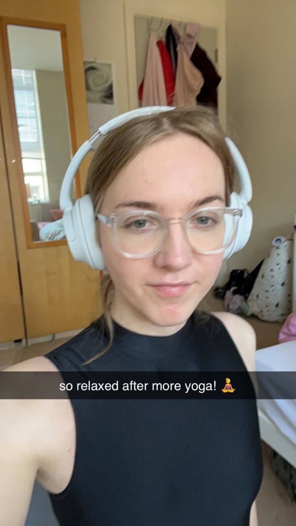 A huge part to play in this sudden rush of wellbeing and acceptance, I think, has been my taking up of yoga. After a decade of my mother trying to get me to try it, I finally gave in a few weeks ago and did a beginners session YouTube video in my flat. Almost instantly, I felt amazing- there was something so exhilarating about it.