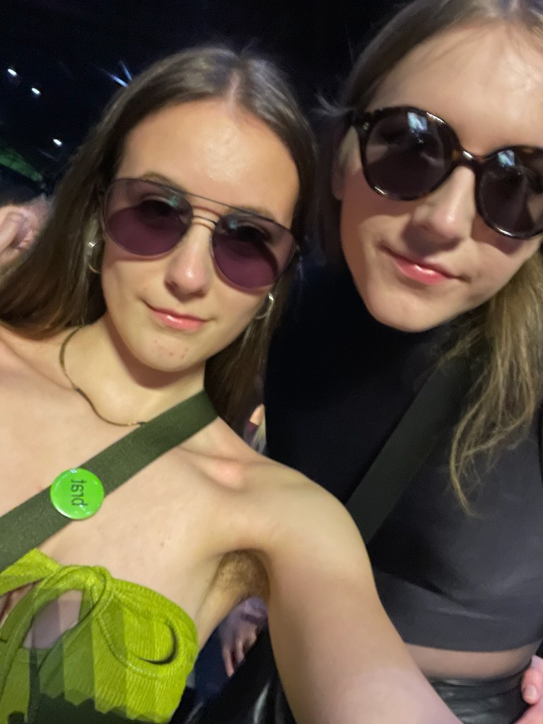 It felt like just the right time to be seeing her- the year of BRAT summer- and we felt lucky to have bought tickets before the album had come out. We’d heard online that standing tickets like ours had been reselling for up to £1000.