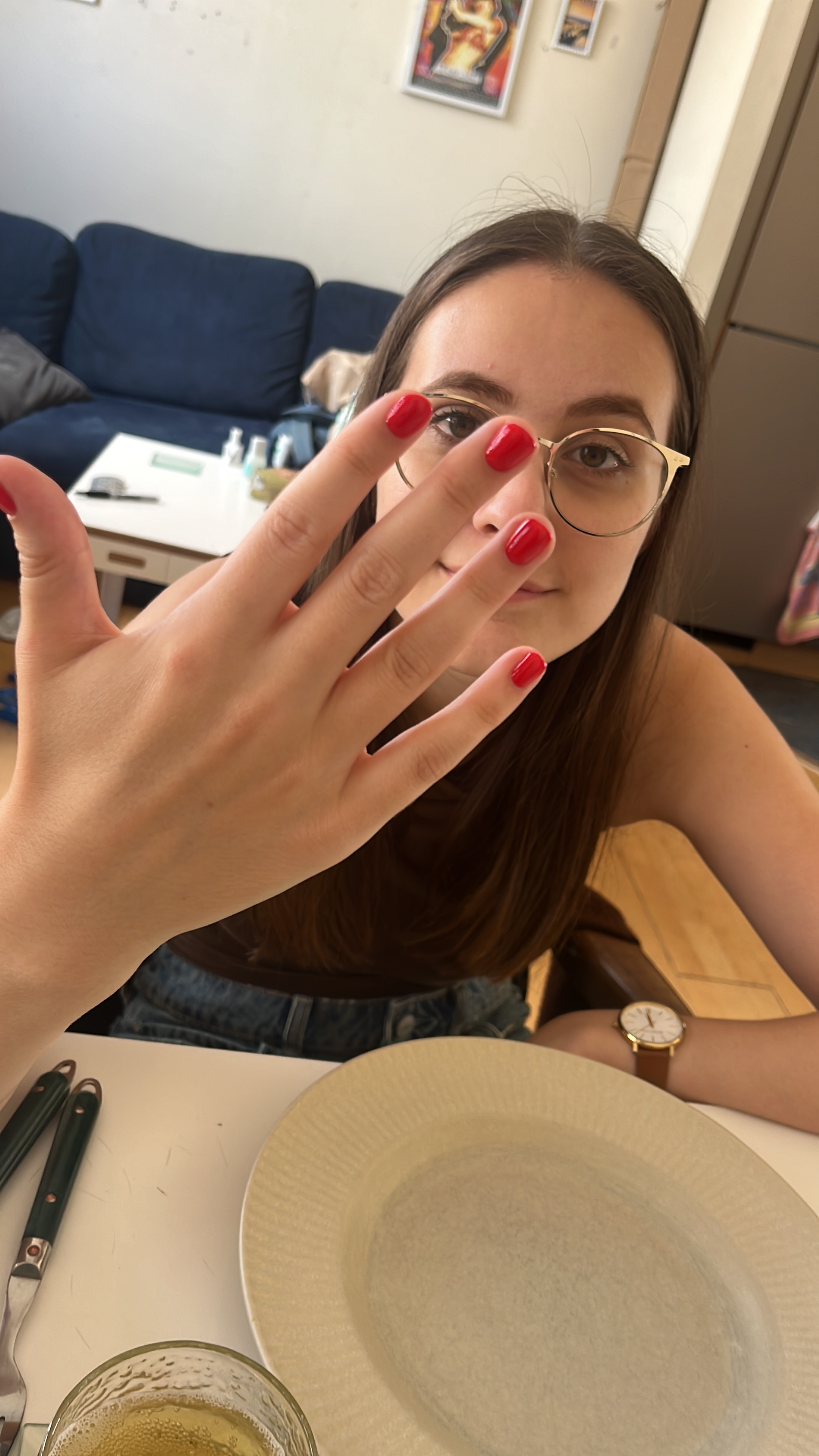 On Tuesday, we went to a nail salon in Camberwell to get our nails done for the first time. We chose BIAB, which is very strong but preserves the health of the nail. For our colours, I chose a dark blue, felt very apt for Greece, and Molly chose a really nice red to match her lipstick and outfits. Immediately, we were really happy we were really happy with the nails, how pristine and hard they felt, how glossy they were to the touch. I think we may be hooked!