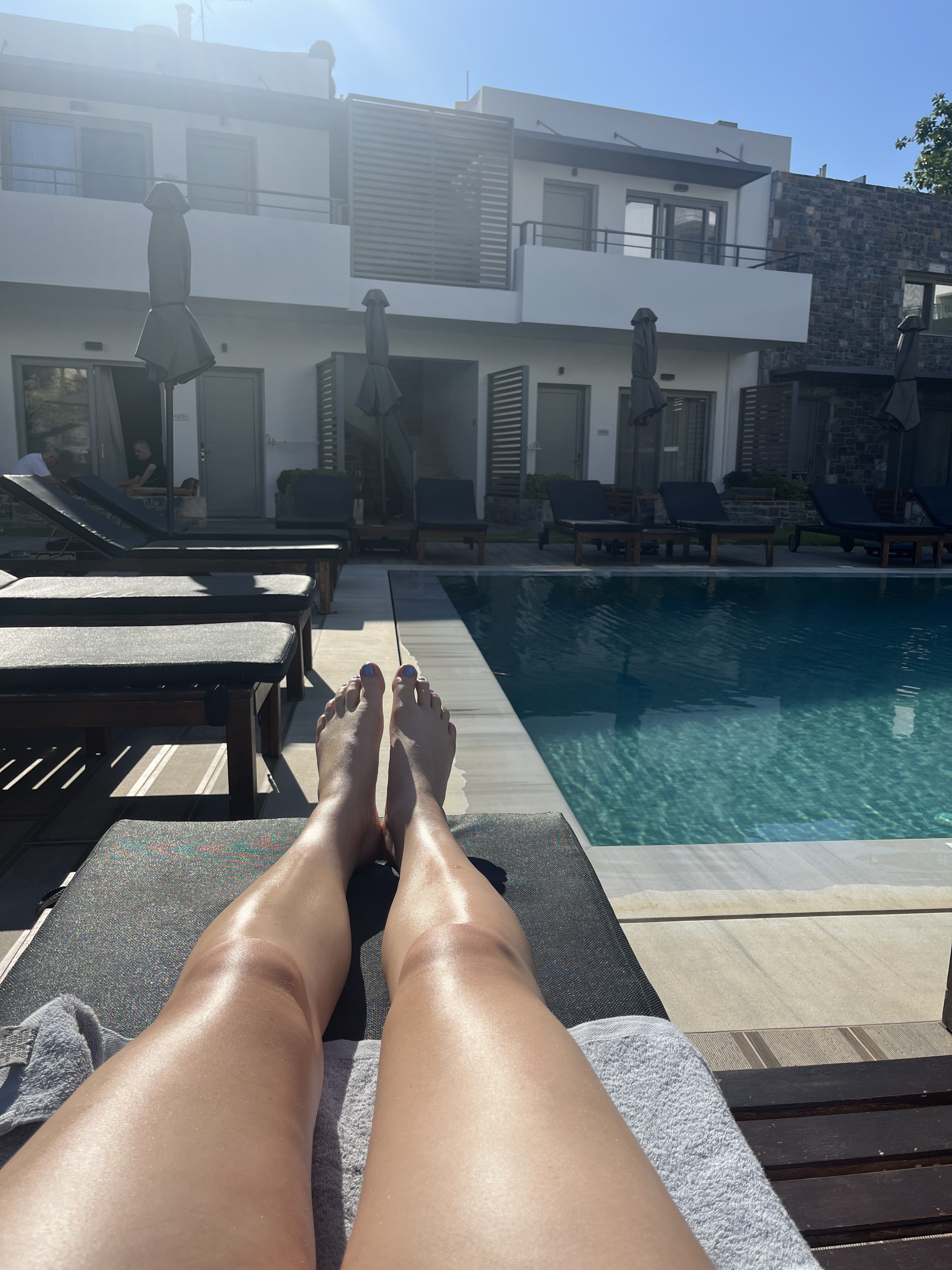 This was how we spent most of the holiday, reclined by the pool, reading and sunbathing- and it was totally glorious. Just what we’d dreamed of and wanted all that time. We chatted about what we were reading, swam around in the pool to cool off, and generally just had a very idyllic time. There was no competition for sunbeds whatsoever, no reserving with towels like they do at bigger more family oriented resorts, and on many occasions we were not only the only two in the pool but the only people around the pool. There were two pools of similar size, for around 12 rooms, so there was more than enough space for everyone.