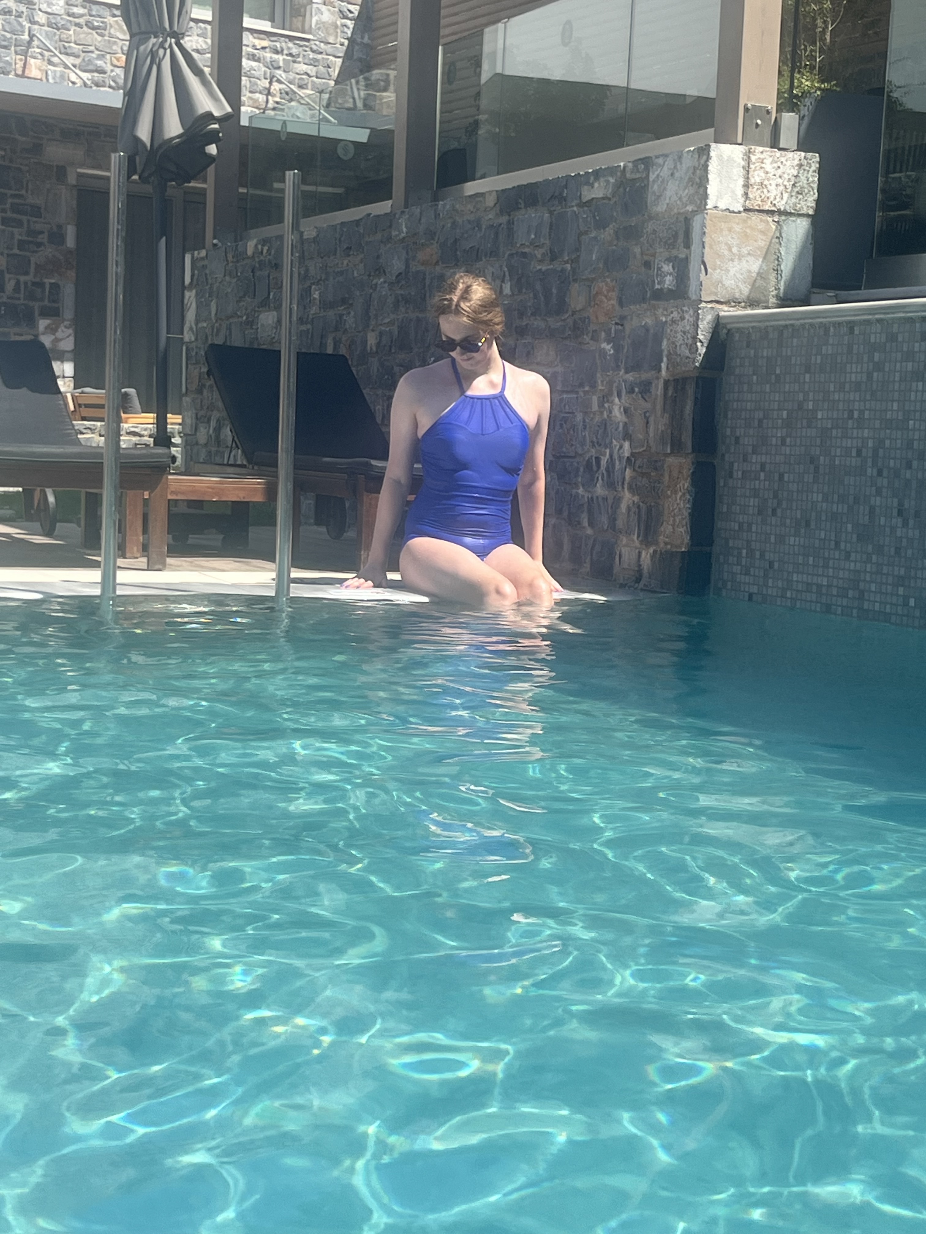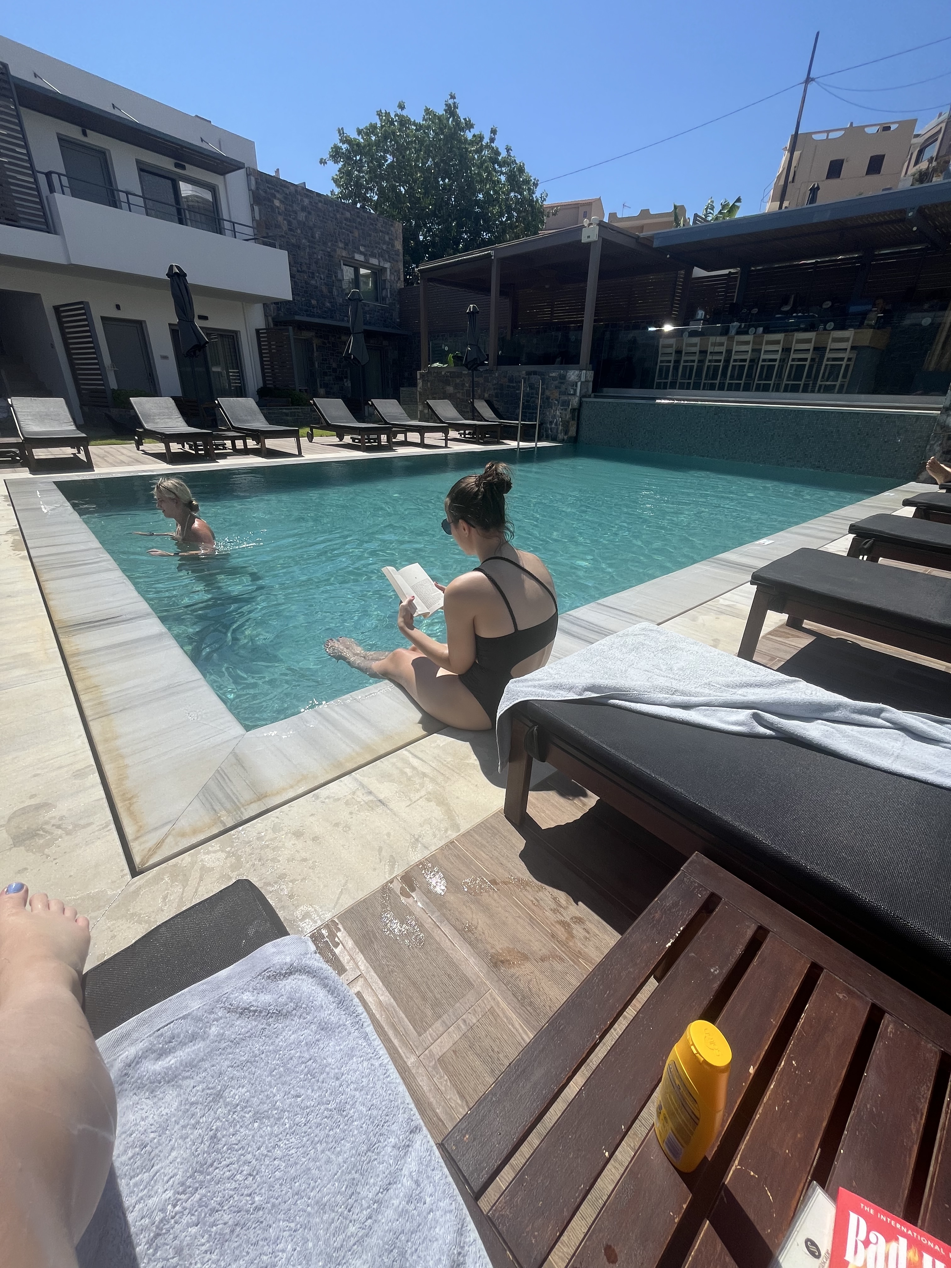 After breakfast we got got into our new swimsuits- bought especially for the trip!- and lathered ourselves in suncream. Then we went down to the pool, which was just outside the room, and set ourselves up on the sun loungers, ready to read.