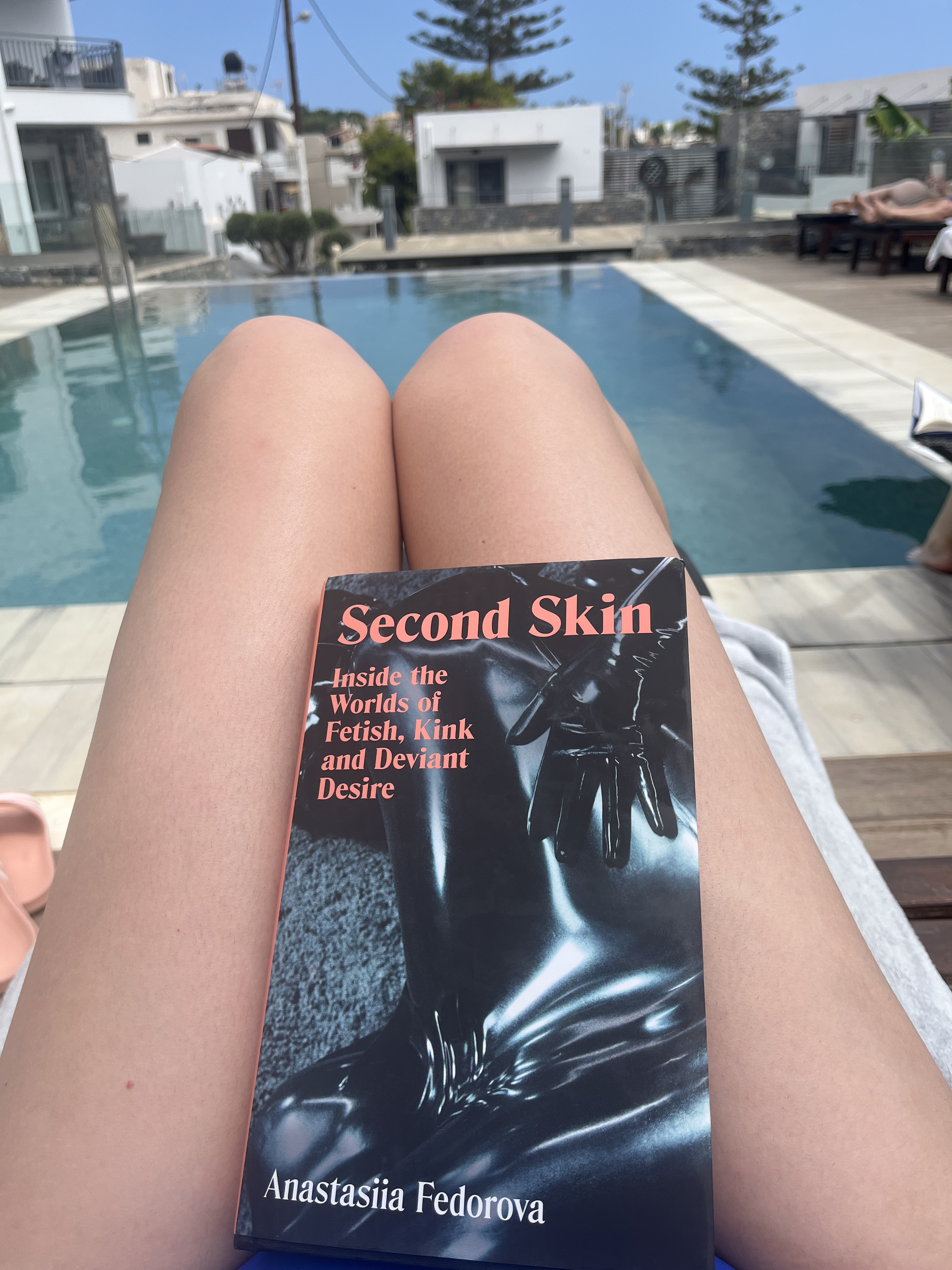 My book selection for the holiday had been purposefully eclectic: from my bread and butter trans coming of age novel, Bad Habit, I moved on to a pretty racy accessory, Second Skin, by Anastasiia Fedorova. I’d picked this book largely because I liked the idea of reading a book with such a stylish and outrageous cover by the poolside, having seen it advertised in The Common Press in Shoreditch that summer. The book is a mix of memoir and non-fiction, and was really fascinating, especially the chapters on things I know next to nothing about/ am not into.