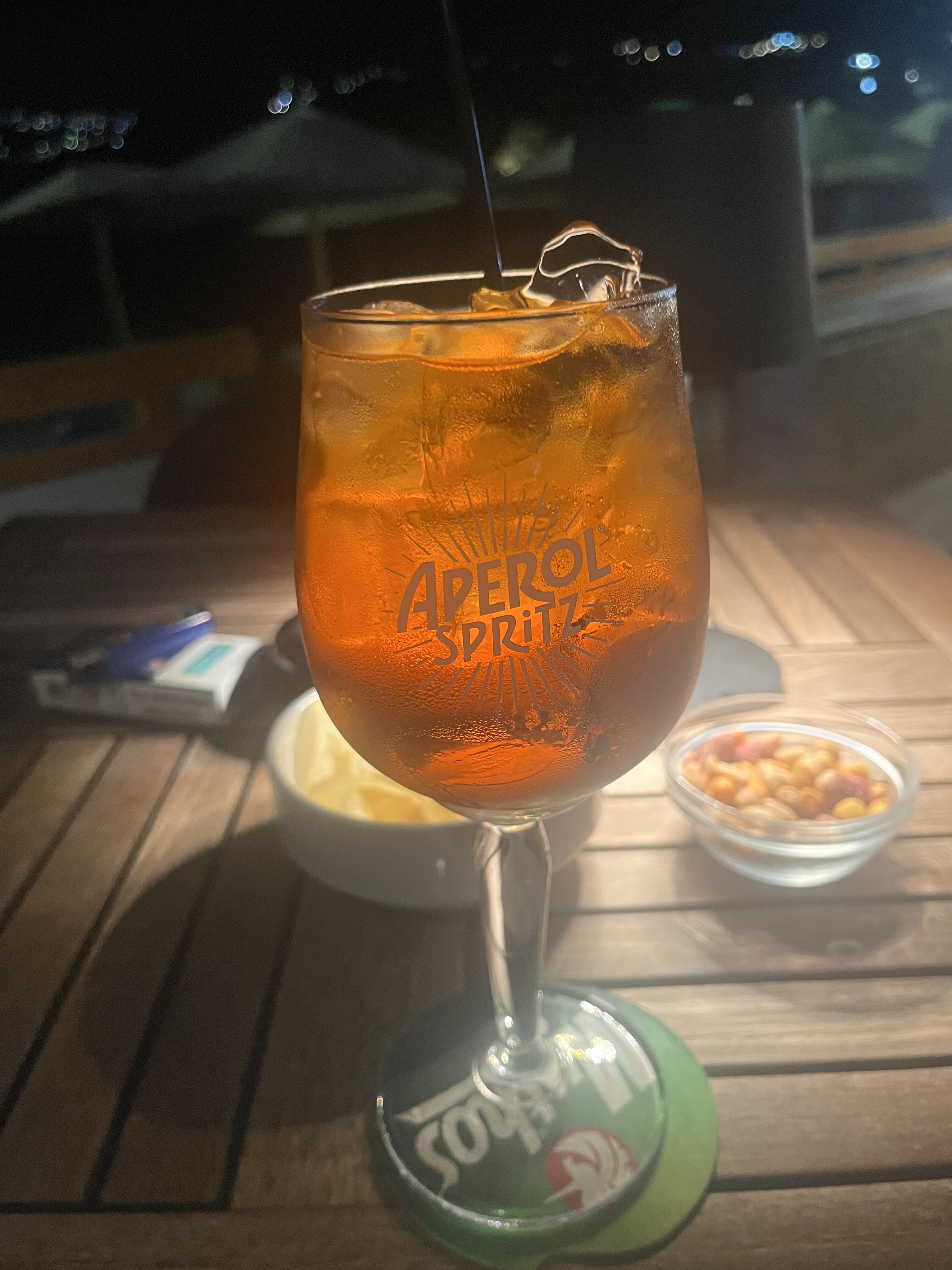 We’d stroll into town for a drink before dinner at ICE bar, which was our favourite bar along the waterfront. By the end of the holiday, the waitress always recognised us, and knew our order, which was often two Aperols. I drank a lot of Aperol and Campari Spritz there- it was just so delicious, and such a beautiful location, with lofi beats in the backround and the early evening sea lapping at the shore.