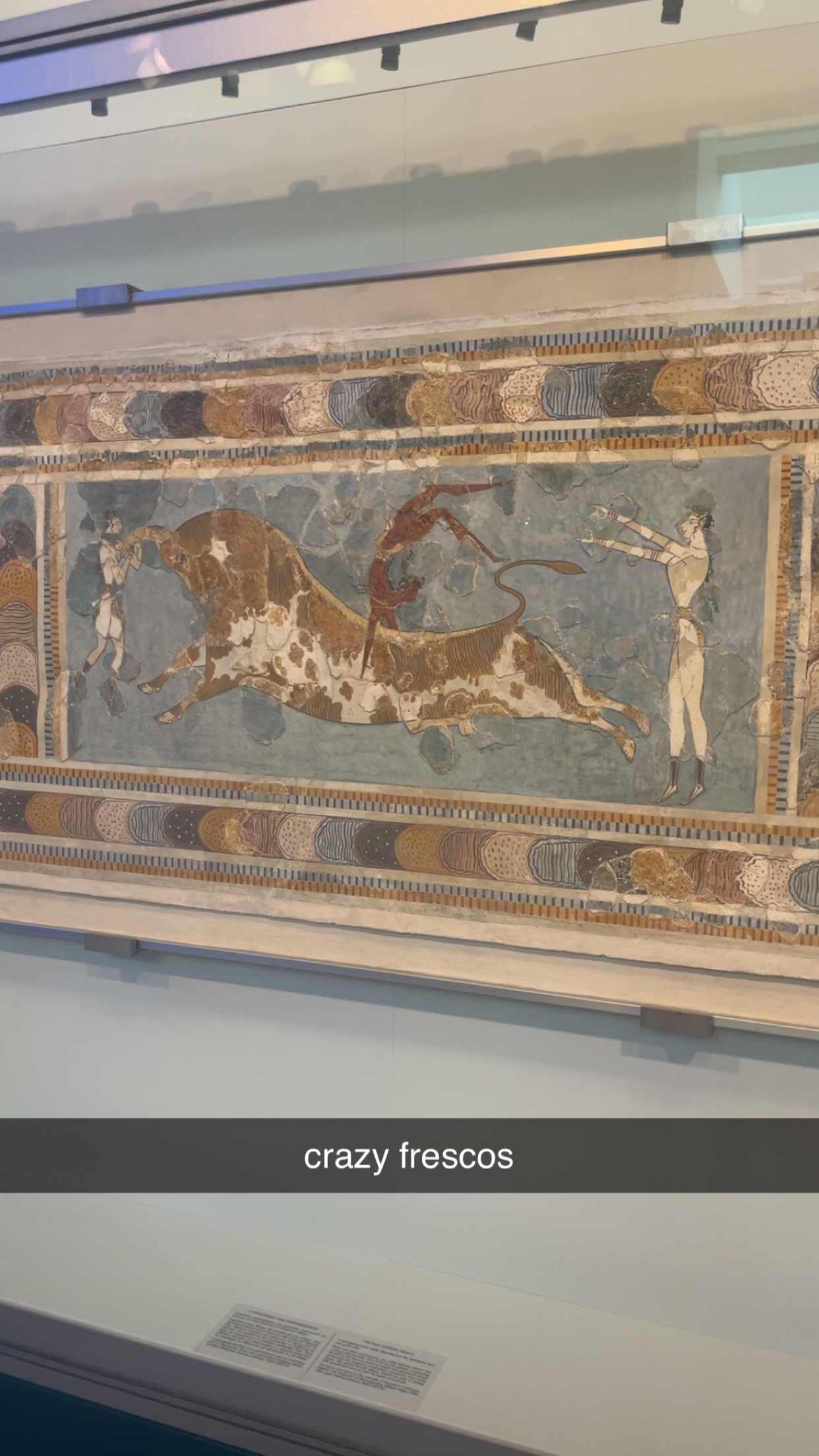 We were unused to the heat of the day when fully clothed, having become accustomed to spending most days in swimwear and next to a pool. We dropped off our suitcases at a hotel and explored the city, visiting the archaeological museum, which featured brilliant frescos from the nearby Minoan Palace of Knossos. Frescos are one the main things that Greece tends to lack compared to Italy, so it was really nice to see them, and stand in slight disbelief at just how ancient they were.